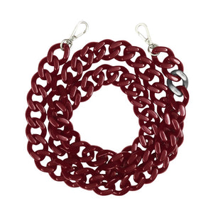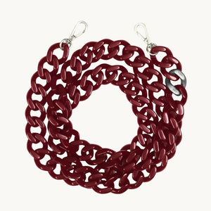 Chaîne à grosses mailles en résine avec mousquetons dorésFabriquée en Italie, la chaîne CHIARA à grosses mailles en résine colorée de haute qualité a deux usages. Grâce à ses 2 mousquetons dorés, elle peut être fixée facilement à toutes nos coques. La chaîne présente une longueur de 120 cm (mousquetons inclus). Chaque produit est livré dans un pochon en coton ou une jolie boîte, avec une étiquette EAN. |