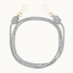 Bandoulière avec strass tressés et deux mousquetons dorés La bandoulière SCARLETT est une bandoulière tressée et entièrement embellie de strass. Grâce aux 2 mousquetons pivotants, elle peut être fixée facilement à toutes nos coques. La bandoulière présente une longueur de 124 cm (mousquetons inclus) et peut être portée en bandoulière ou en collier. Chaque bandoulière est emballé dans un pochon en coton ou une jolie boîte LOUVINI, avec une étiquette code EAN. |