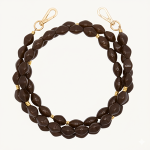 Detachable strap with wooden beads, the words "Beijos" and two golden hooks