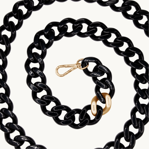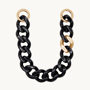 Small chunky resin chain with golden hooks Made in Italy, the PETIT ZOE chunky chain with large links in high quality colored resin has two uses. The PETIT ZOE chain is also a bracelet, which can be worn separately. Thanks to its 2 rotating rings, it can be easily attached to all our cases. The chain has a length of 22 cm (rings included). |