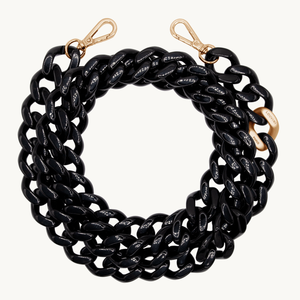 Small chunky resin chain with golden hooks Made in Italy, the PETIT ZOE chain with large links in high quality colored resin has two uses. Thanks to its 2 rotating rings, it can be easily attached to all our cases. The chain has a length of 27 cm (rings included). |