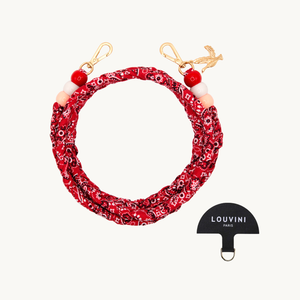 Cordon tressé détachable + ajustable avec deux mousquetons en métal doréLe cordon TESSA est la bandoulière indispensable pour porter son téléphone en mode mains libres. Ces coloris multicolores sont exclusivement réalisés par Louvini. Détails