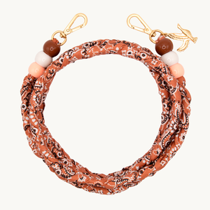 CORDON AVEC TISSU BANDANA ET 2 MOUSQUETONS DORÉS La bandoulière ARIZONA est tressée avec un bandana et 3 perles colorées. Grâce aux 2 mousquetons tournants, elle peut être fixée facilement à toutes nos coques. Le cordon présente une longueur de 125 cm (mousquetons inclus) et 1,5 cm d'épaisseur. Il peut être porté en bandoulière et en collier. Chaque cordon est emballé dans un pochon en coton, avec une étiquette code EAN.
