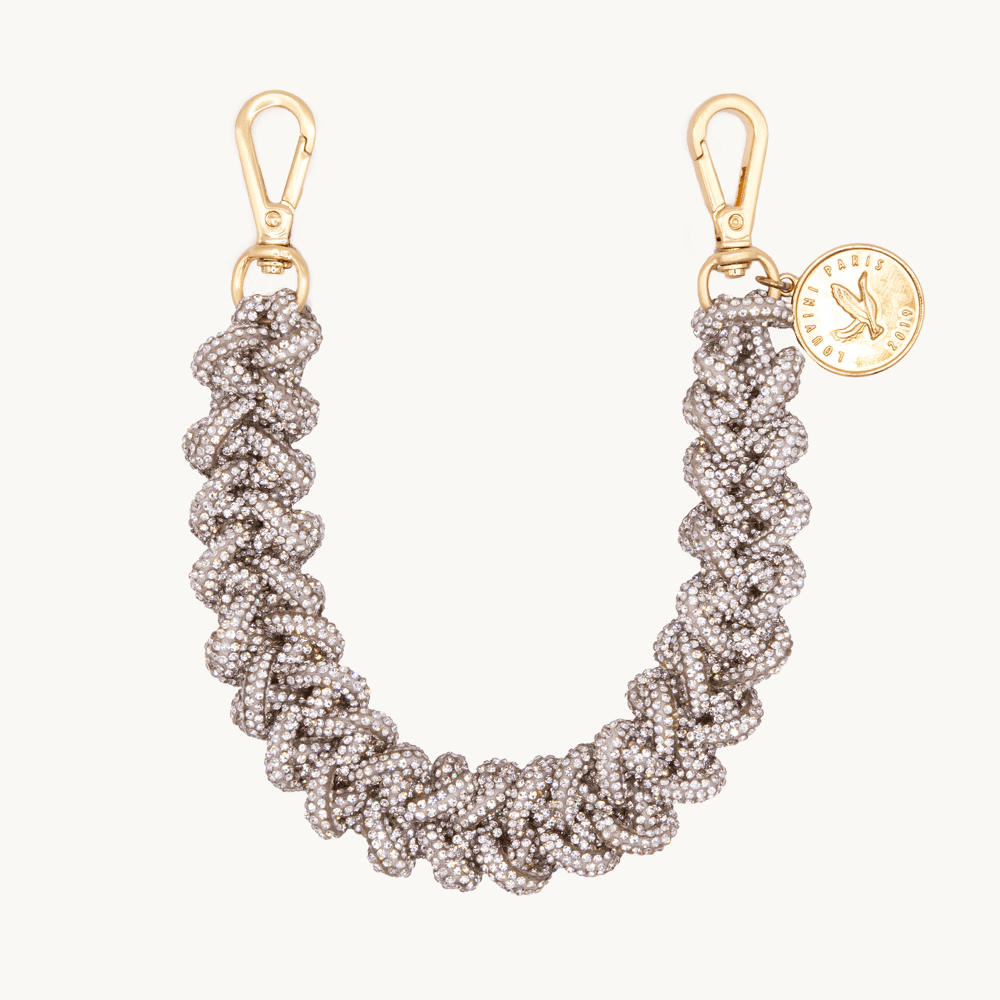 Le bracelet PETIT SCARLETT est un cordon intégralement embelli de strass. Grâce aux 2 mousquetons tournants, elle peut être fixée facilement à toutes nos coques. La chaîne présente une longueur de 22 cm (mousquetons inclus) et peut être portée en bracelet.